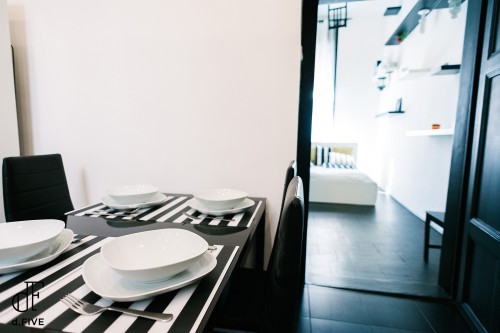 The d.Five Inspire Apartment is comfy and quiet. (Excellent room qualities if you ask us.) This apartment comes with a seating area, a satellite flat-screen TV in the charmingly decorated bedroom, and a separate kitchen and dining area. Little extras, like in-room coffee and tea, make all the difference. Connect and consume: use the free WiFi to scope your best options for nearby international and local cuisine.